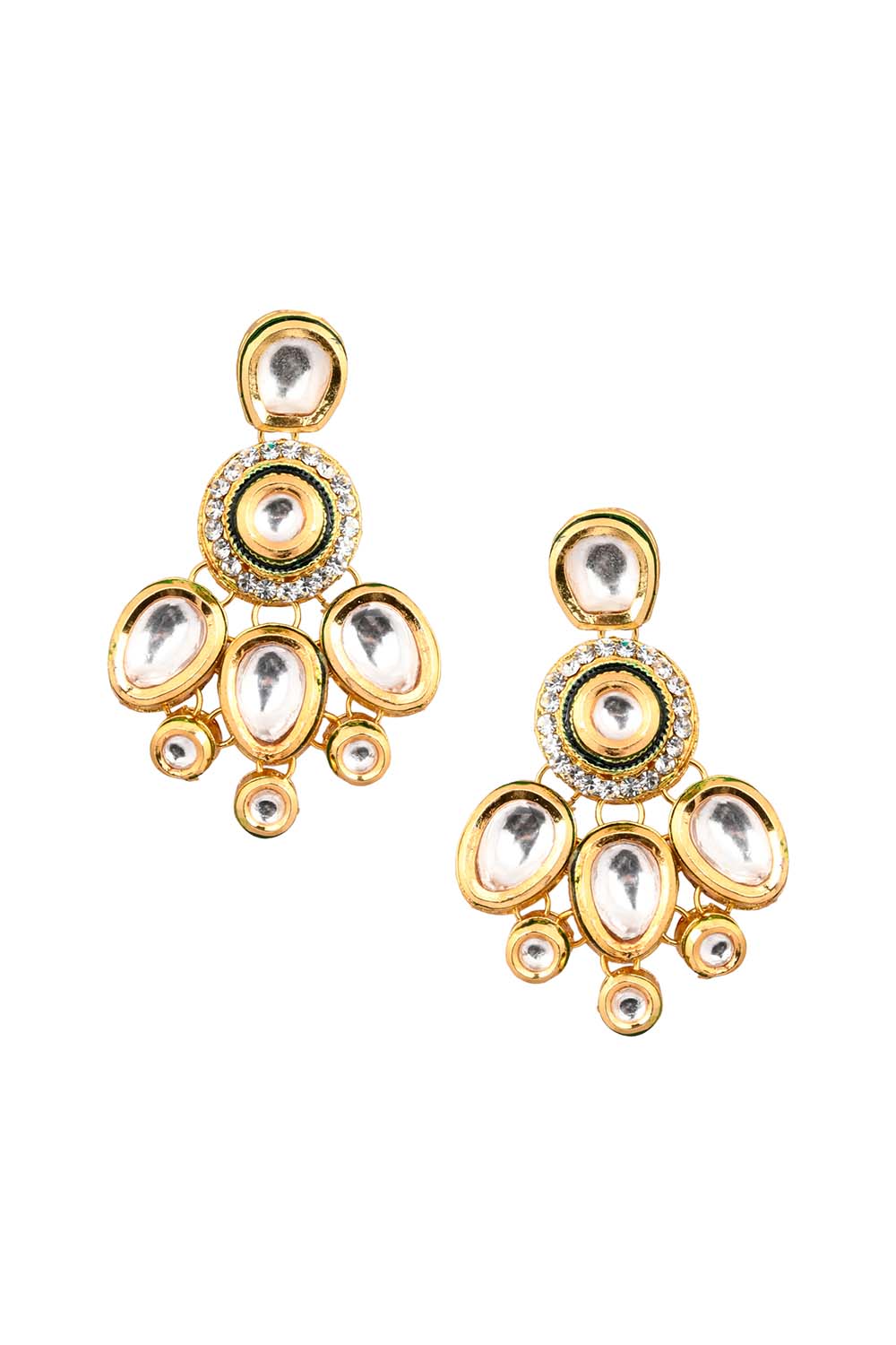 Upgrade your outfit with our Earring a dazzling pair of earrings designed to make a statement. Crafted from Copper and adorned with Embellished with kundan & Meenakari on back side these earrings are perfect for Partywear. Lightweight and versatile, they complement both traditional and modern outfits. Pair them with a matching necklace or wear them solo for effortless glamour.