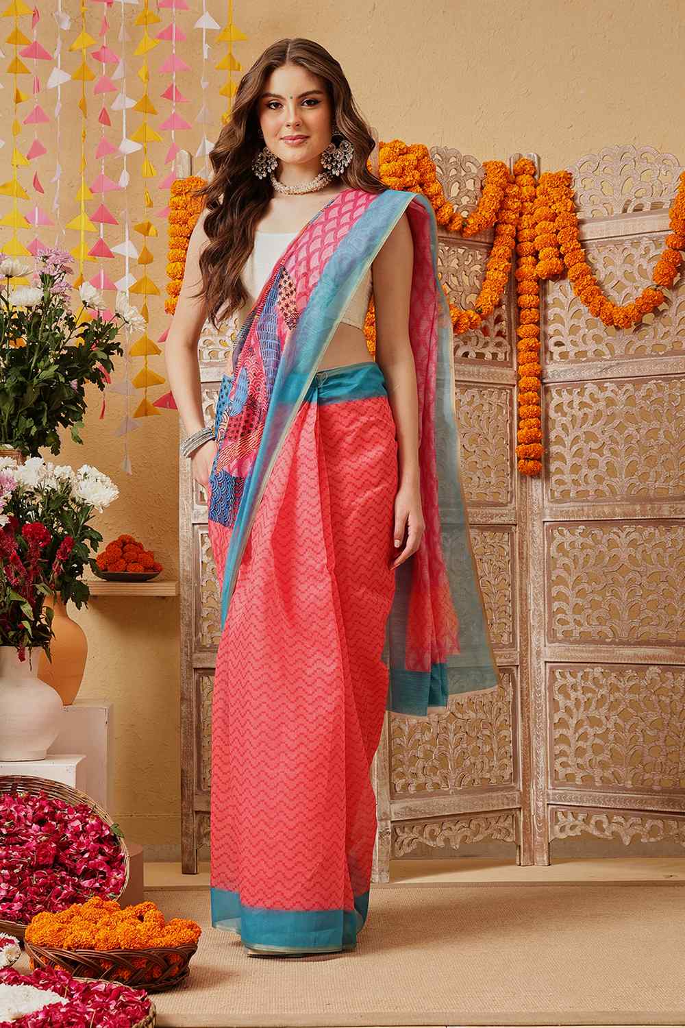 Elevate your wardrobe with our exquisite Ready to Wear Saree a masterpiece crafted to add timeless elegance to your style. Made from Chanderi this saree offers a perfect mix of comfort and sophistication. Adorned with Printed it showcases intricate craftsmanship that speaks volumes of tradition and artistry. Perfect for Festive this saree is a versatile addition to your collection, ensuring you stand out effortlessly. Pair it with elegant Jewelry, for a glamorous look. Add Clutches or Potli Bags and complete the ensemble with Wedges & Heels , making it a perfect choice for any event. Make a statement and embrace the elegance of Ready to Wear Saree today