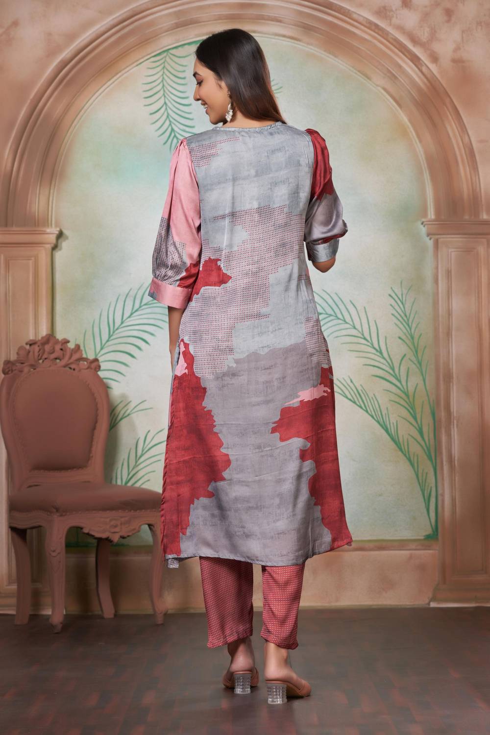 Stay stylish and comfortable with our Kurti Pant Set designed for all-day elegance. Made with Roman Silk this set is perfect for easy movement and timeless appeal. The beautiful and intricate Printed elevates its design for Casual or daily wear, this kurti set is your go-to outfit. Pair it with elegant earrings and kolhapuri sandals or heels for a traditional look or wedges for a modern edge