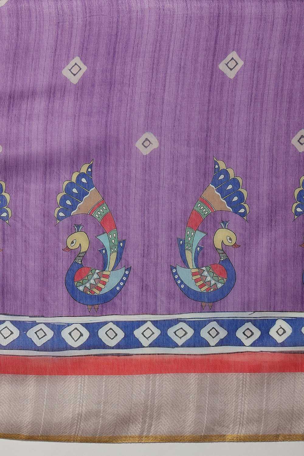 Violet Madhubani Printed Cotton Blend Ready to Wear Saree