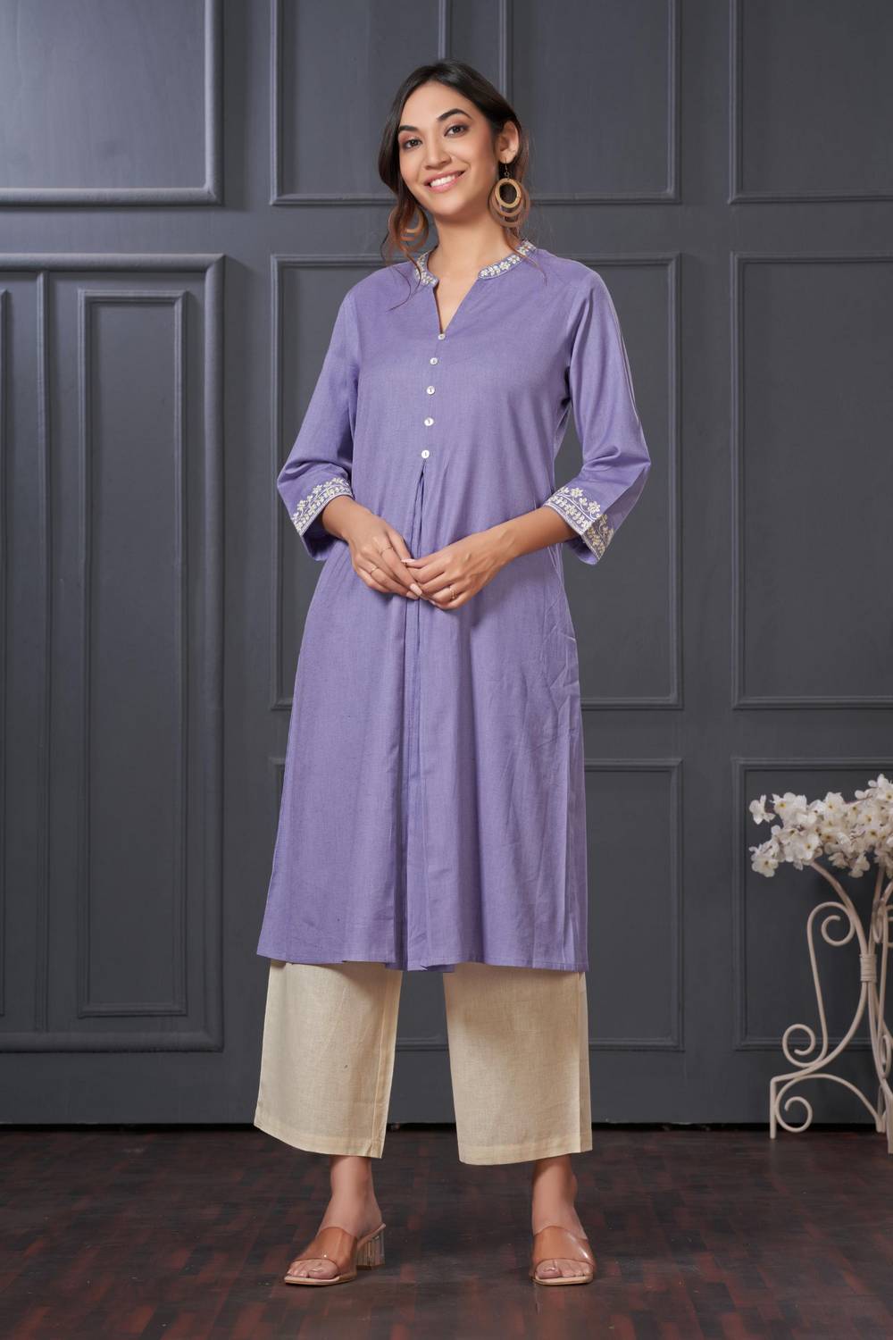 Stay stylish and comfortable with our Kurti Pant Set designed for all-day elegance. Made with Cotton this set is perfect for easy movement and timeless appeal. The beautiful and intricate Solid elevates its design for Casual or daily wear, this kurti set is your go-to outfit. Pair it with elegant earrings and kolhapuri sandals or heels for a traditional look or wedges for a modern edge
