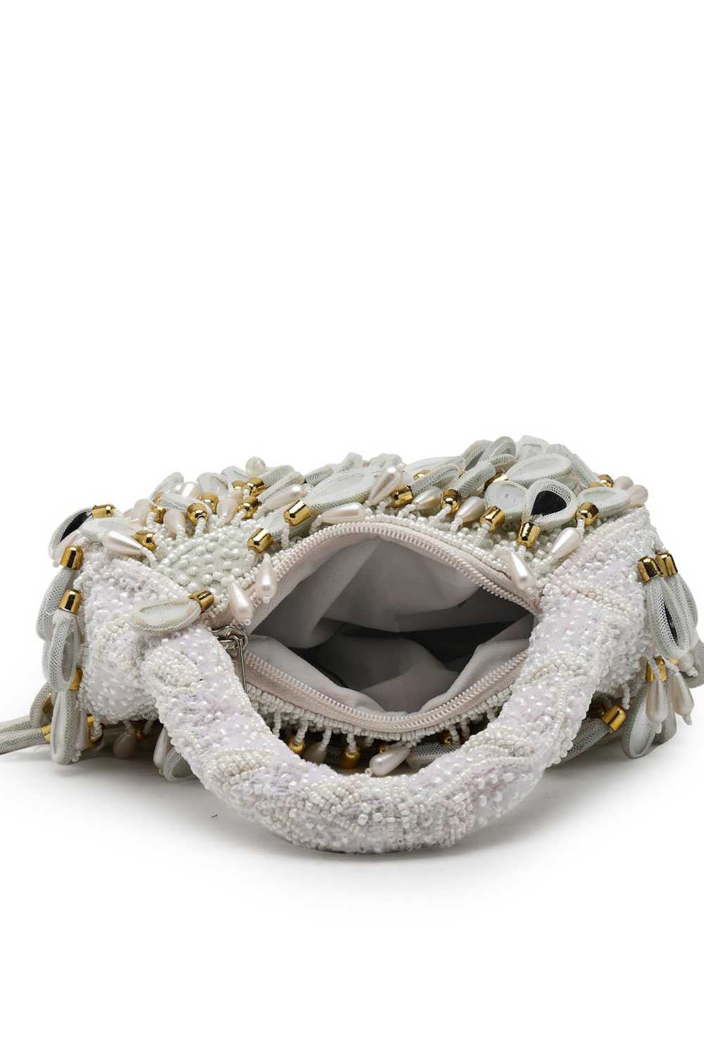 White Embellished Velvet Handbag