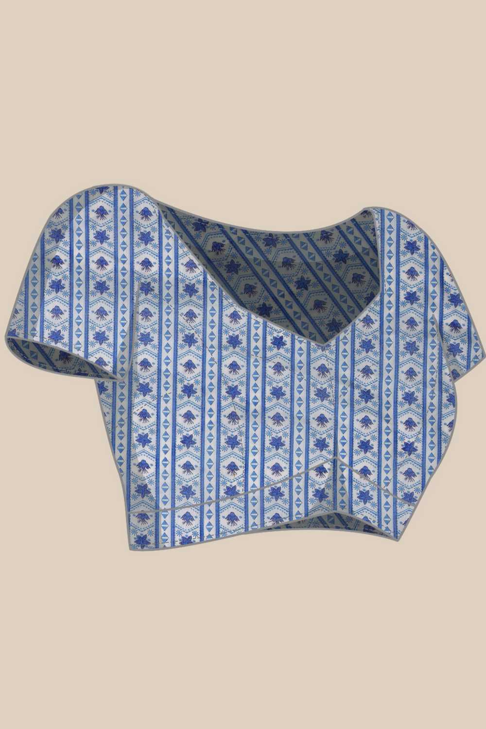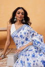 White Floral Printed Cotton Blend Ready to Wear Saree