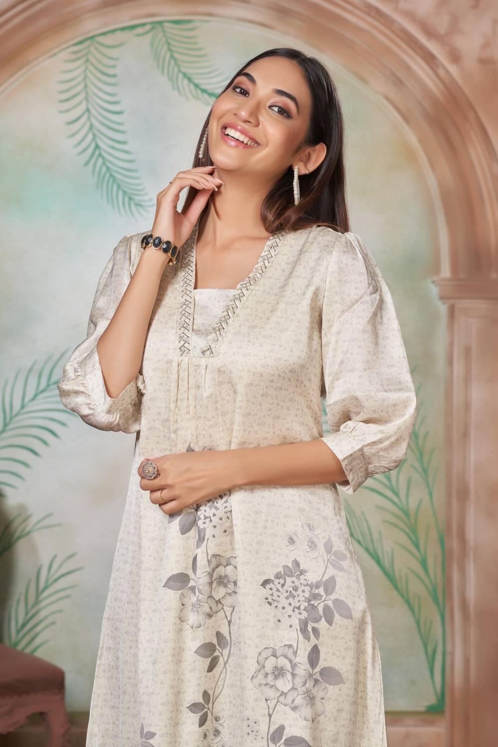 Stay stylish and comfortable with our Kurti Pant Set designed for all-day elegance. Made with Roman Silk this set is perfect for easy movement and timeless appeal. The beautiful and intricate Floral Printed elevates its design for Casual or daily wear, this kurti set is your go-to outfit. Pair it with elegant earrings and kolhapuri sandals or heels for a traditional look or wedges for a modern edge
