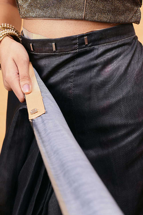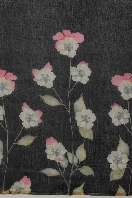 Black Floral Printed Cotton Blend Ready to Wear Saree