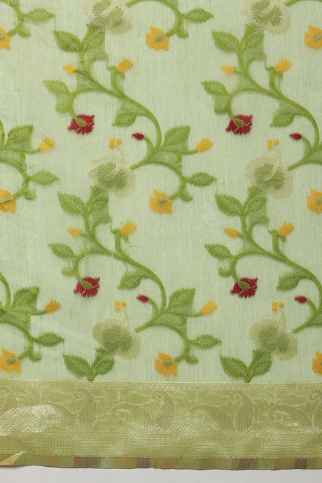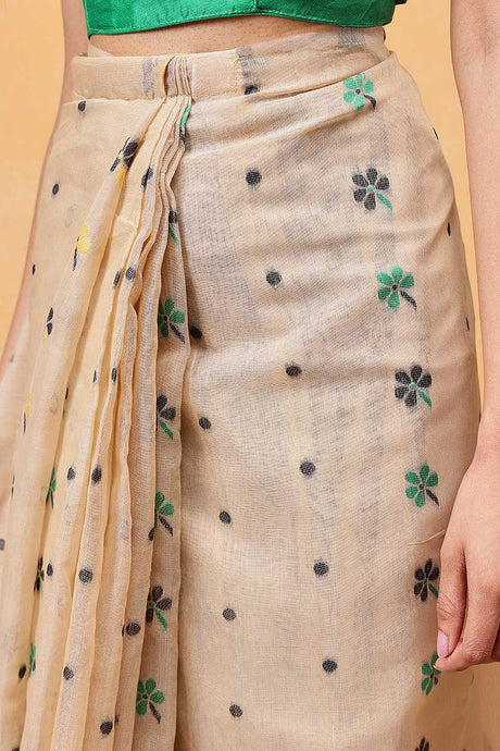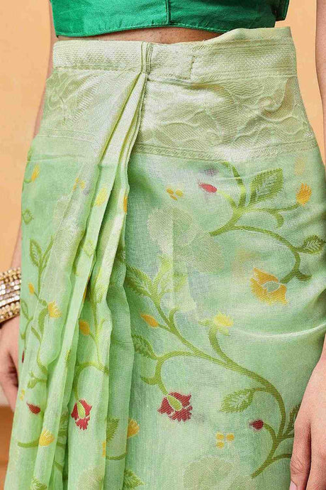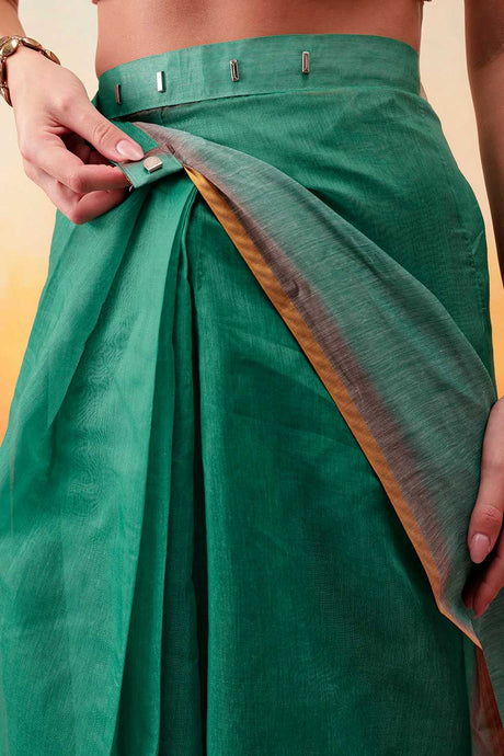 Dark Green Floral Woven Cotton Ready to Wear Saree