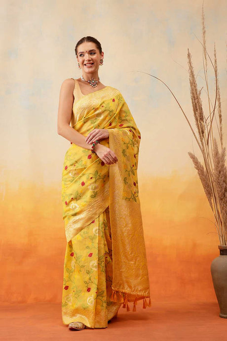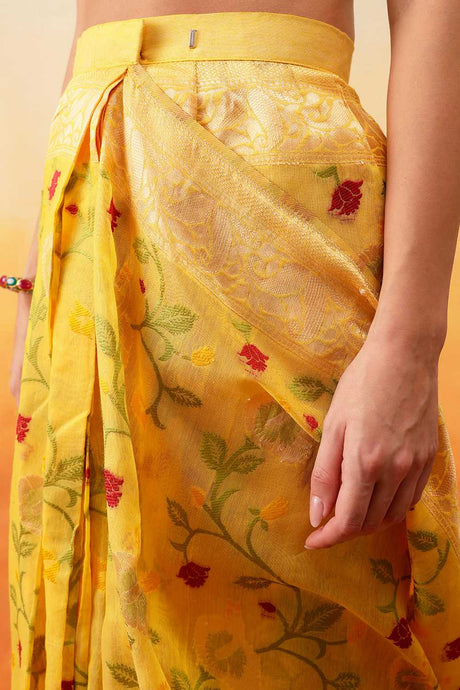 Yellow Floral Woven Art Silk Ready to Wear Saree