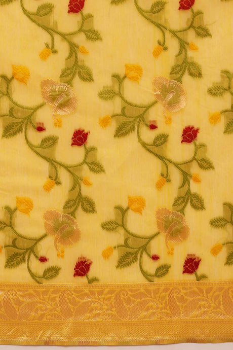 Yellow Floral Woven Cotton Ready to Wear Saree