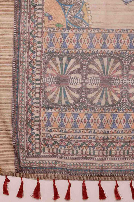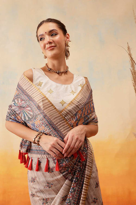 Beige Floral Woven Tissue Silk Ready to Wear Saree