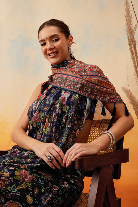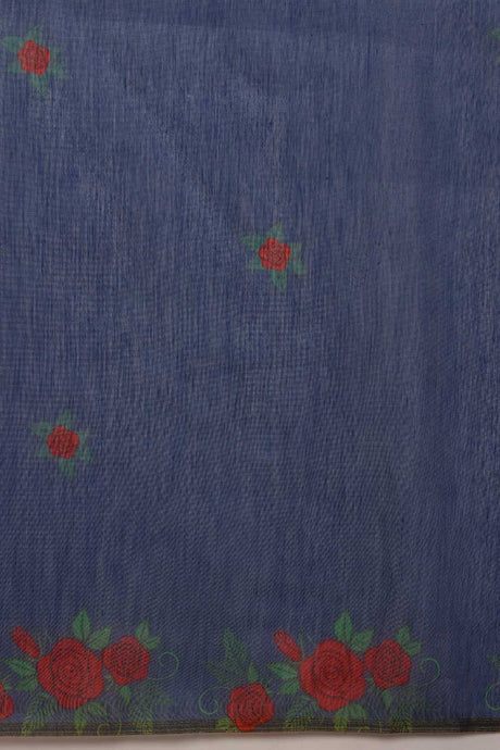 Navy Blue Floral Printed Cotton Blend Ready to Wear Saree