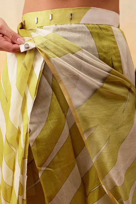 Yellow Striped Print Cotton Blend Ready to Wear Saree