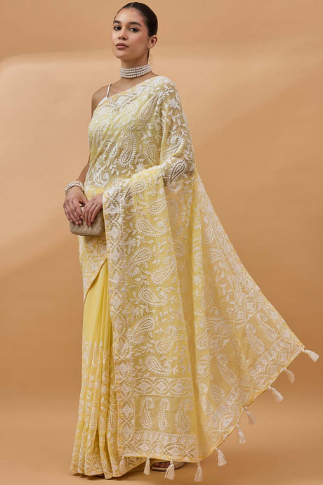 Yellow Kota Leheriya Organza Saree With Shimmer Unstitch Blouse