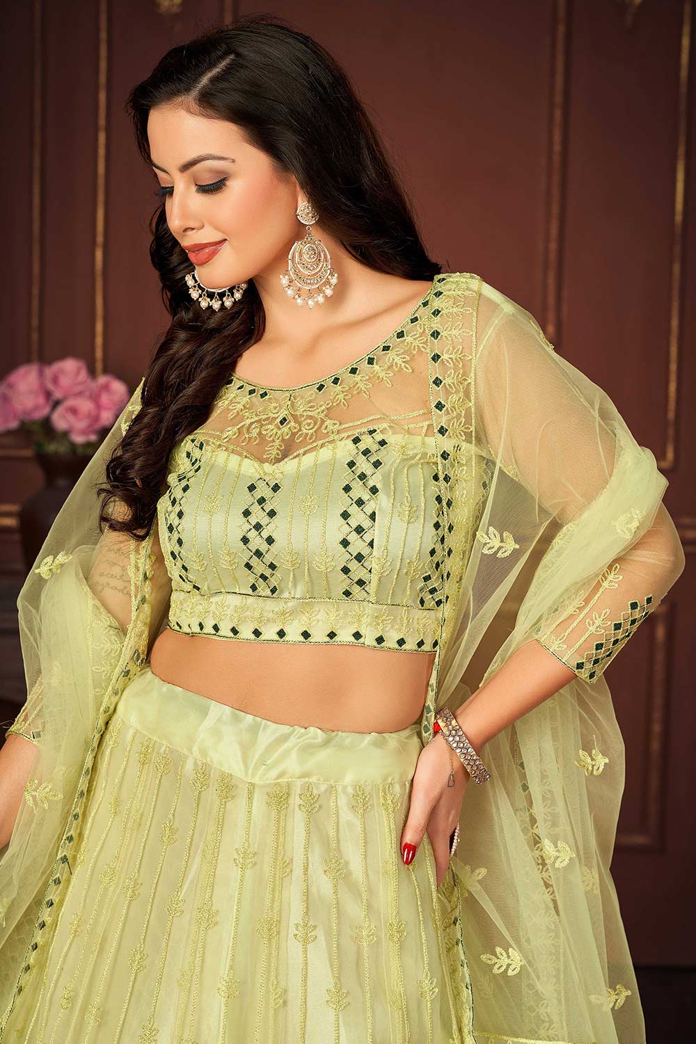 - Lehenga Fabric: Net