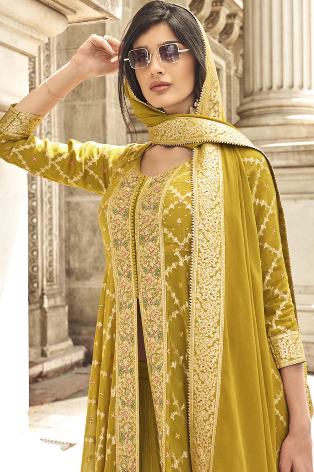Step into effortless style with our Palazzo Suit Set crafted for the modern woman who cherishes tradition. Made from soft Georgette it keeps you comfortable all day long. The Bandhani design lends a touch of sophistication to your outfit. Perfect for Festive,Party this salwar suit is a must-have for versatile styling options. Style it with minimalistic accessories and flats for a casual look or jewelry and heels for special events
