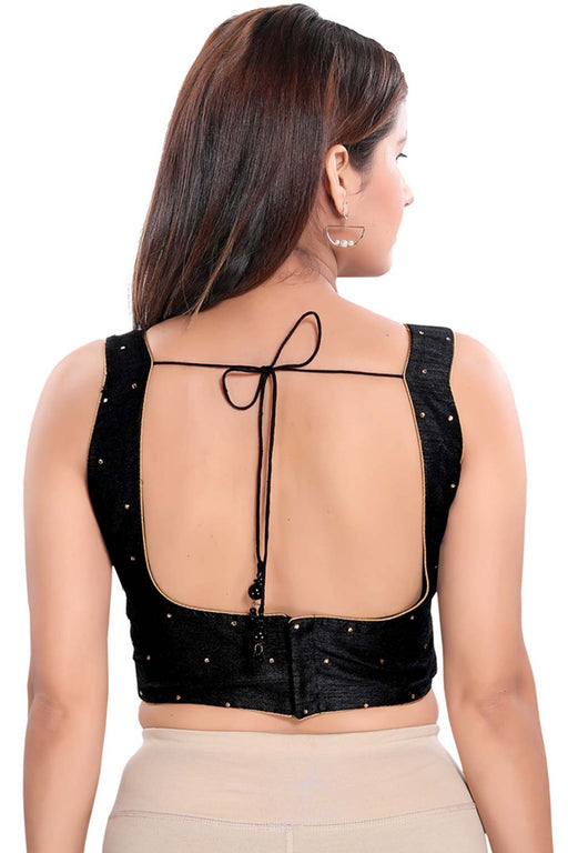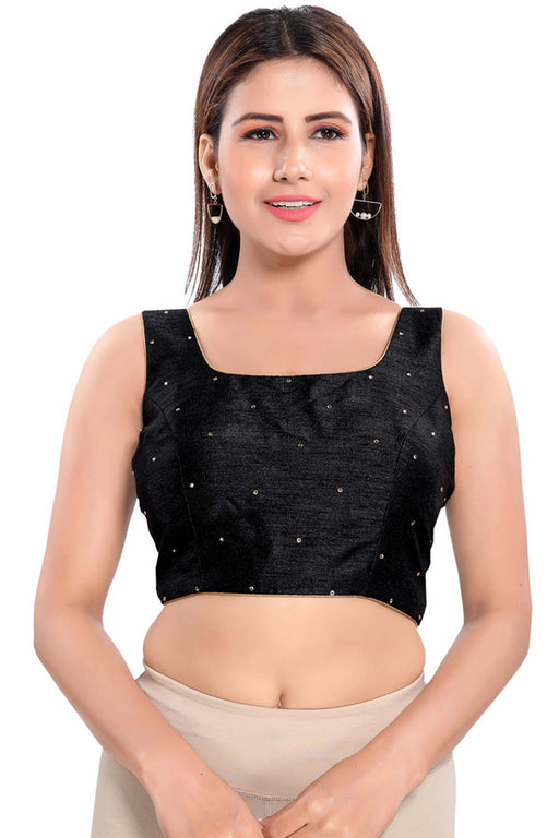 Black Silk Sleeveless Padded Blouse