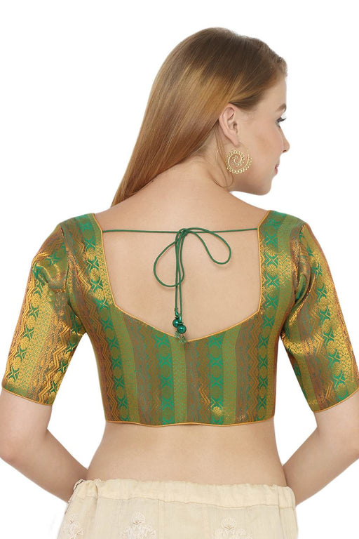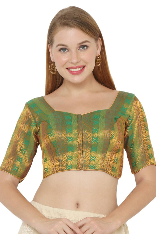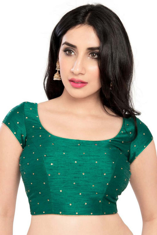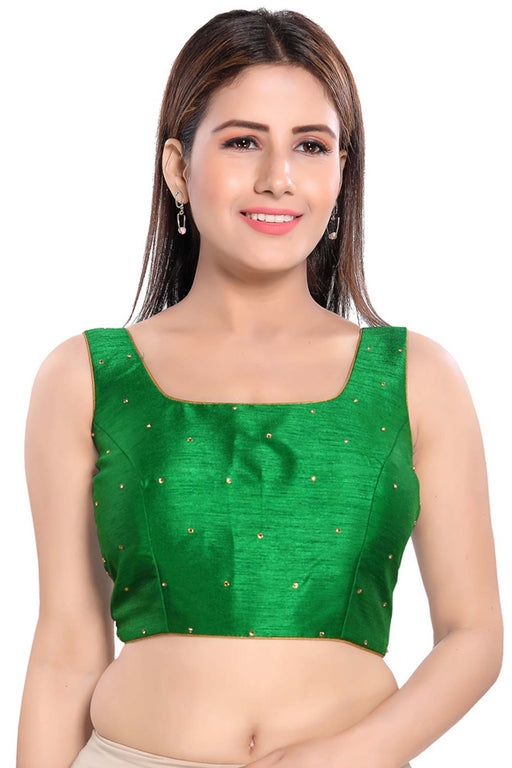 Green Silk Sleeveless Padded Blouse