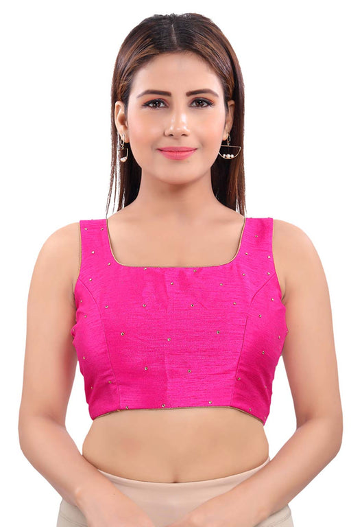 Magenta Silk Sleeveless Padded Blouse