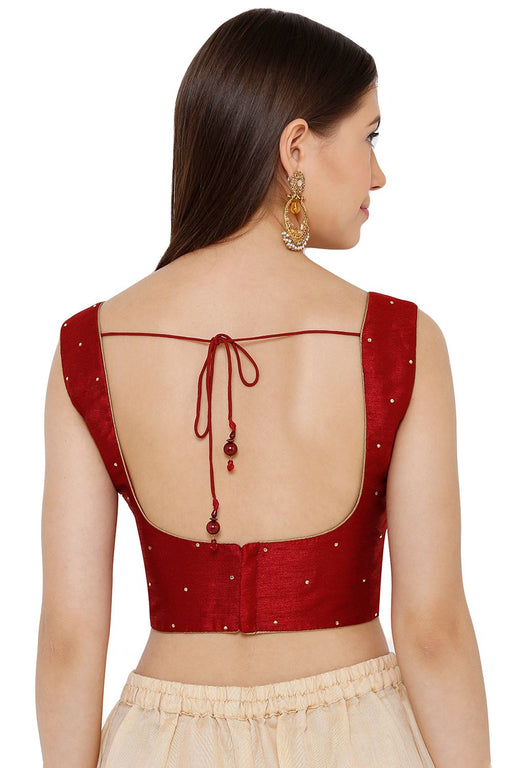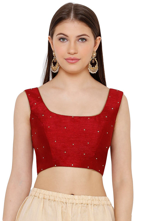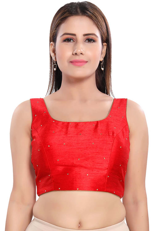 Red Silk Sleeveless Padded Blouse