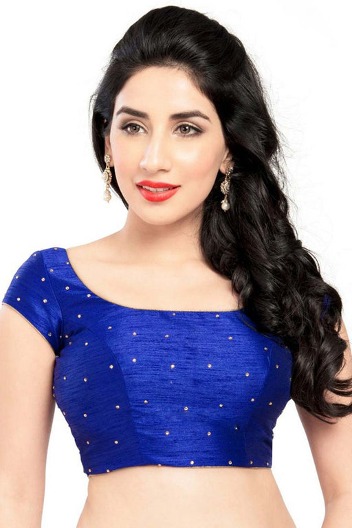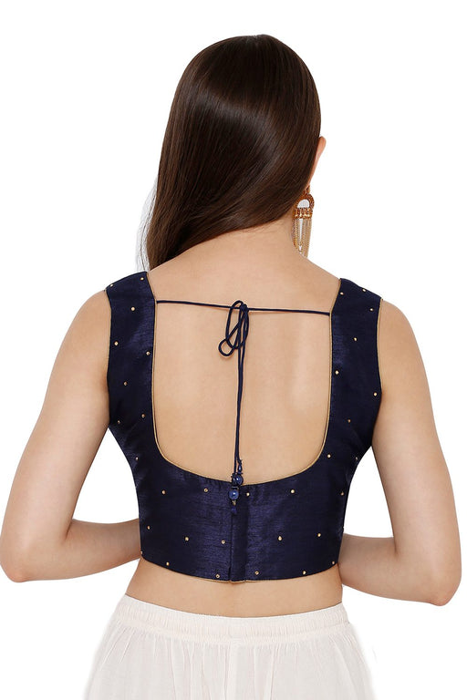 Blue Silk Sleeveless Padded Blouse