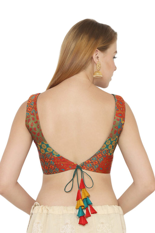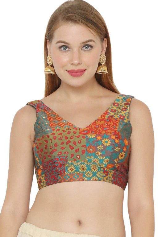 Multi-Color Brocade Sleeveless Padded Blouse