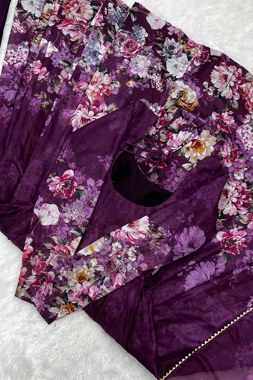 Immerse yourself in timeless elegance with this exquisitely designed gown, crafted from luxurious organza silk fabric. Perfect for a range of special occasions, this gown seamlessly combines traditional charm with modern sophistication.