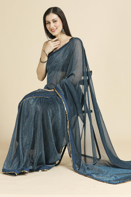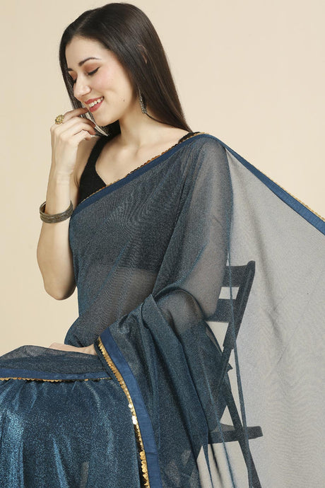 Teal Fancy Fabric Sequins Work Party Wear Designer Saree