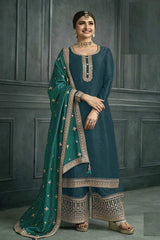 Aqua Blue Georgette Silk Embroidered Palazzo Suit