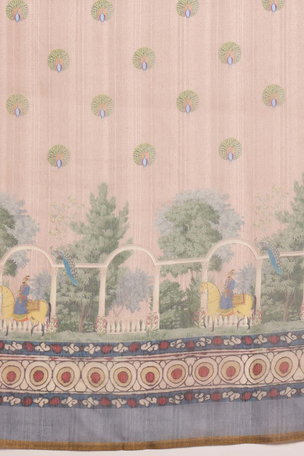 Beige Cotton Blend Printed Madhubani Saree