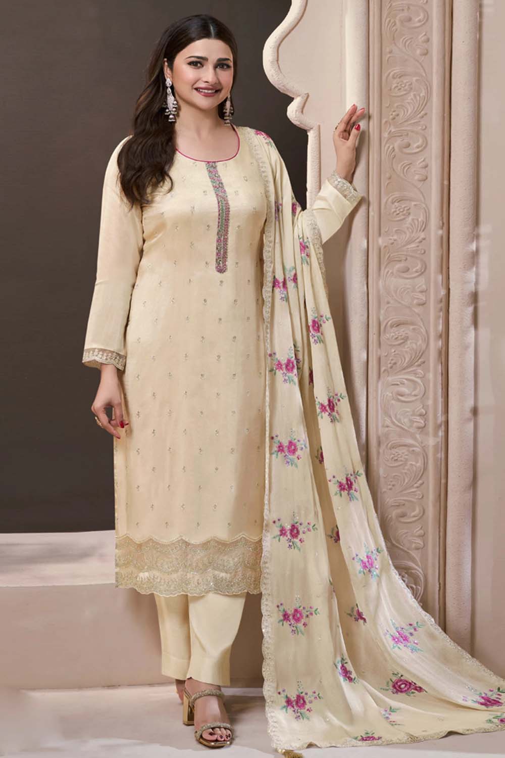 Step into effortless style with our Straight Cut Suit Set crafted for the modern woman who cherishes tradition. Made from soft Silk it keeps you comfortable all day long. The Embroidered on the Sequin design lends a touch of sophistication to your outfit. Perfect for Festivewear,Haldi this salwar suit is a must-have for versatile styling options. Style it with minimalistic accessories and flats for a Festive look or jewelry and heels for special events