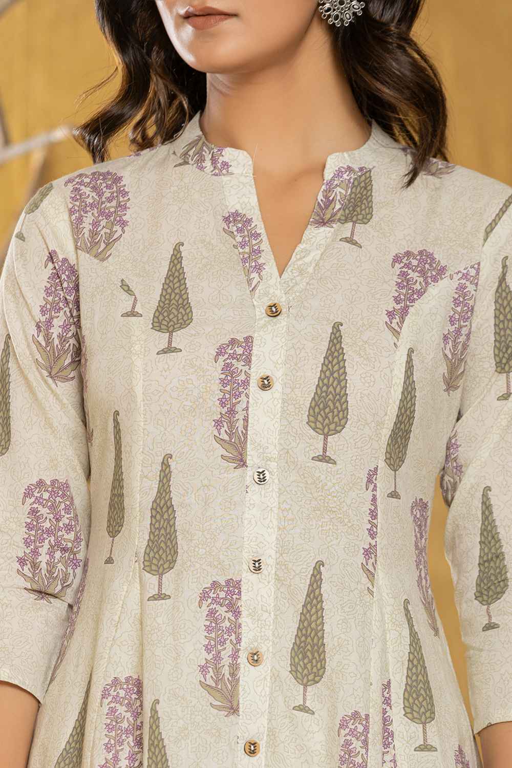 Beige Ethnic Motifs Cotton Co-Ord Set