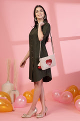 Stay stylish on the go with our Sling Bag a must-have bag for every fashionista. Crafted from premium Cotton Canvas & Jacquard and adorned with Heart Embellished this bag combines elegance and practicality. Whether for Smart Casual or daily use, it’s your ultimate style companion