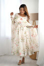 Beige Printed Organza Anarkali Suit Set