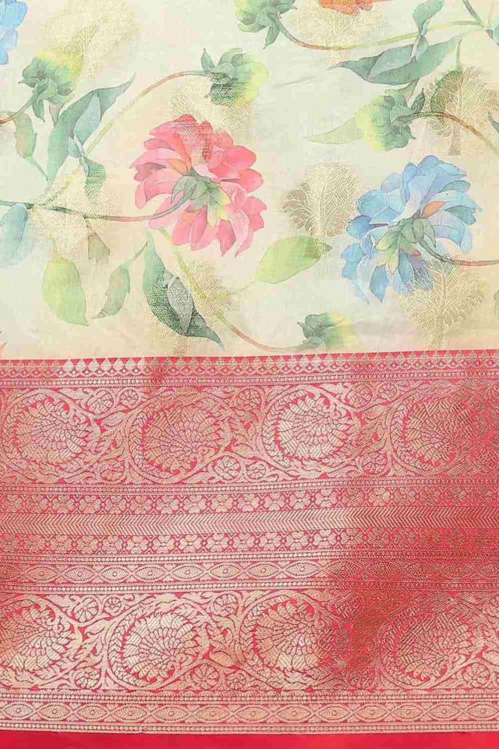 Beige Soft Art Silk Floral Printed Banarasi Saree