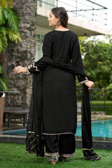 This Art Silk Embroidered Palazzo Suit Set is a perfect blend of traditional craftsmanship and modern style. Featuring intricate embroidery, the set includes a beautifully designed palazzo, tunic, and matching dupatta, ideal for festive occasions.