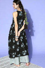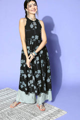 This Black Cotton Floral Flared Fit Kurti is a timeless choice for any occasion. The intricate prints add a touch of sophistication to the ensemble, while the comfortable rayon fabric ensures effortless elegance and ease throughout the day.