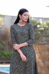 This Black Cotton Printed Straight Kurti is a timeless choice for any occasion. The intricate prints add a touch of sophistication to the ensemble, while the comfortable rayon fabric ensures effortless elegance and ease throughout the day.