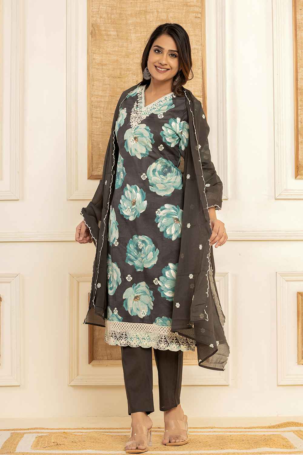 Stay stylish and comfortable with our Kurti Pant Sets designed for all-day elegance. Made with Pure Cotton this set is perfect for easy movement and timeless appeal. The beautiful Floral Print and intricate Thread Work elevate its design for casual or daily wear, this Kurti Pant Set is your go-to outfit. Pair it with elegant earrings and kolhapuri sandals or a heels for a traditional look or wedges for a modern edge.