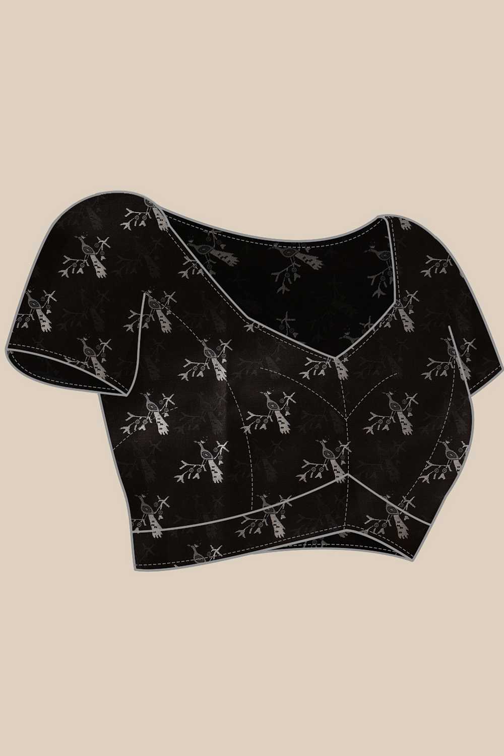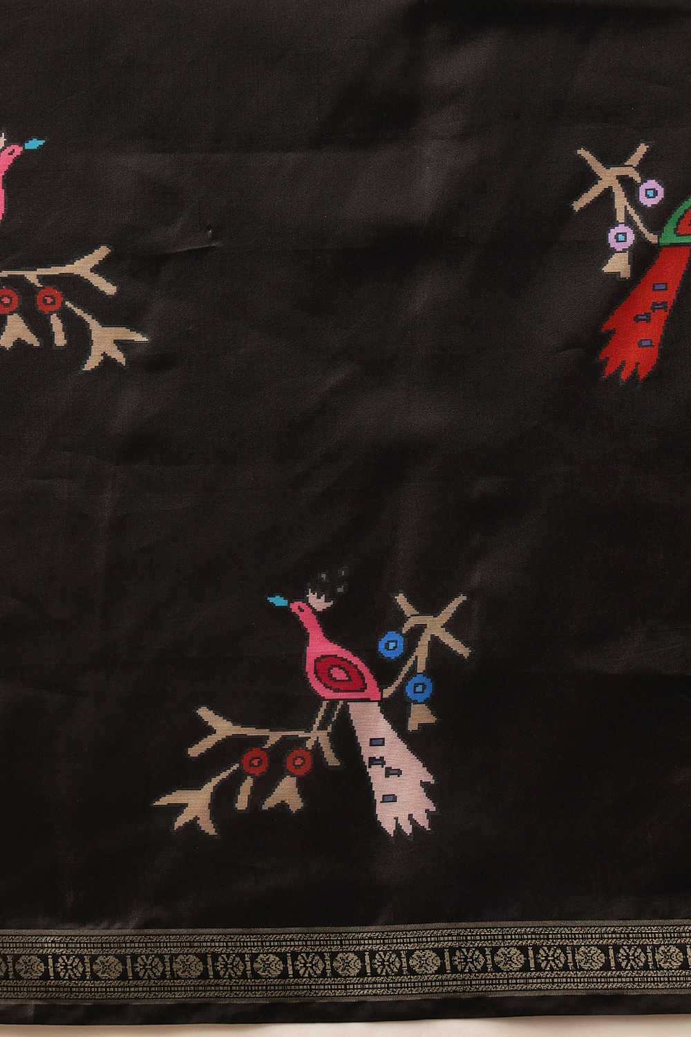 Black Floral Printed Art Silk Saree