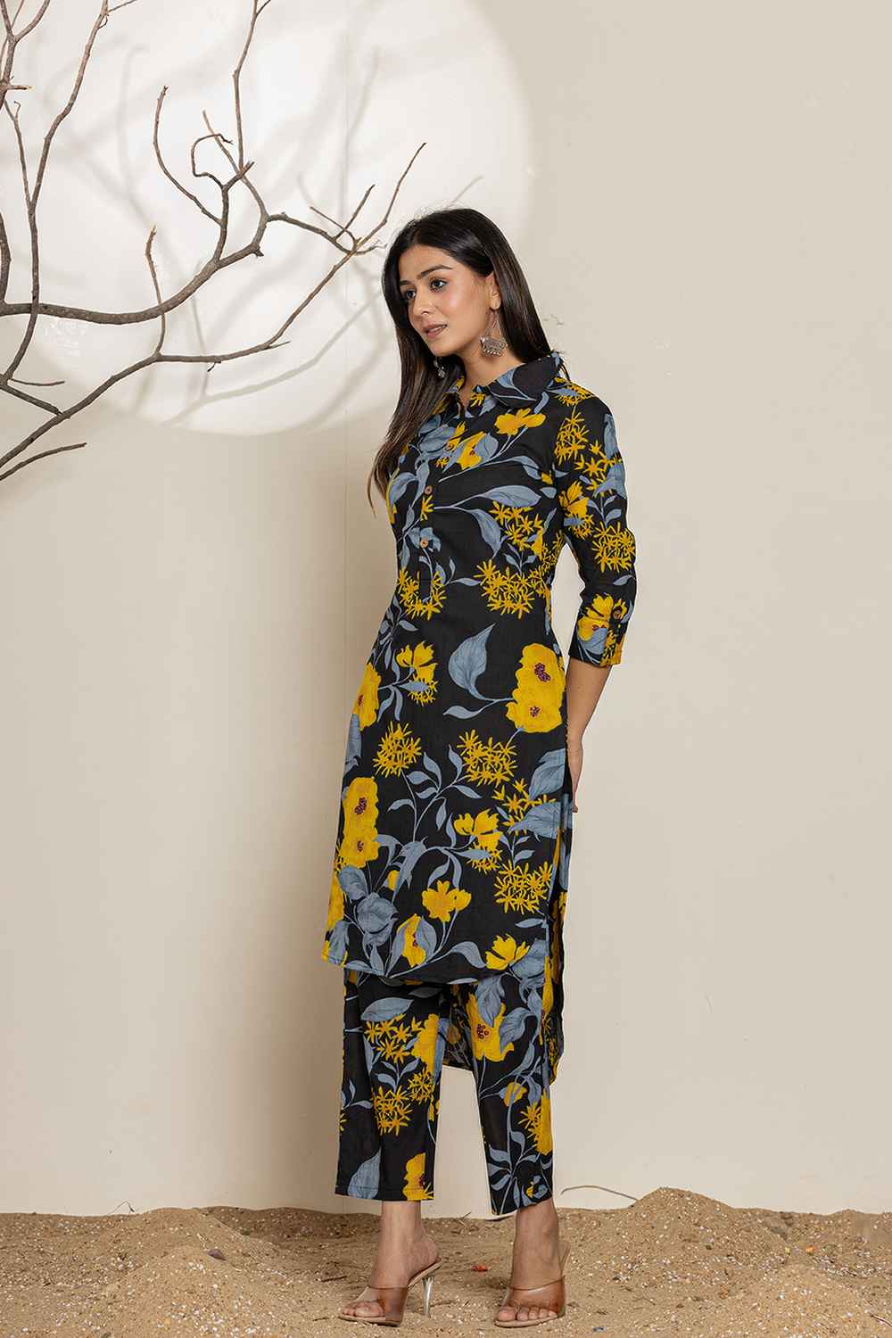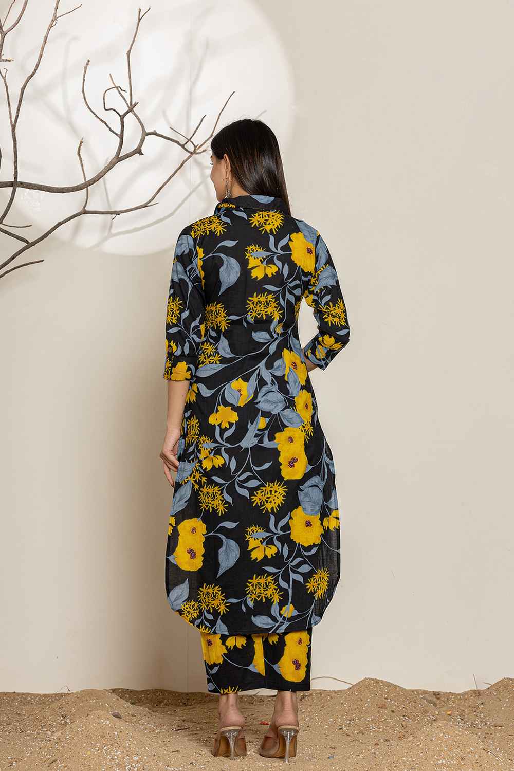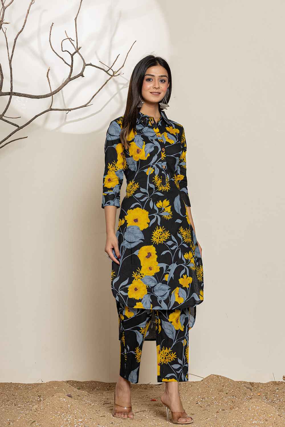 Grab attention with ease with our Black Floral Print Cotton Co-Ord Set,the ultimate in coordinated chic. Crafted from good quality of Cotton this set is designed for comfort and style.Featuring a sleek Floral Print and ,itƒ??s perfect for creating an on-trend, put-together look.Be it a brunch outing, a casual day at work or Party,this co-ord set fits any setting. Pair it with chunky sneakers and minimal jewelry for a cool vibe, or pair it with heels and bold accessories.