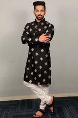 Experience timeless style with our Men's Kurta Set a perfect balance of tradition and modern sophistication. Made from Silk this Kurta set offers unmatched comfort and a refined look. Featuring Sequin and Floral it reflects a rich heritage with a modern touch. Designed for Festivewear, Wedding this outfit is perfect for special occasion or your celebrations. Complete the look with mojari shoes and a classic watch for a dapper appearance. Make every occasion special with the elegance of Men's Kurta Set