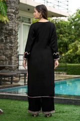 Black Hand Embroidery Art Silk Straight Cut Kurti Palazzo Set