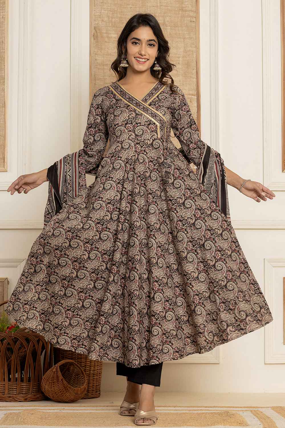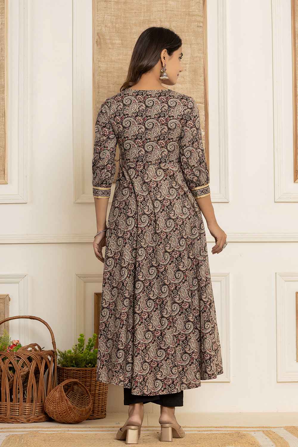 Black Paisley Print Pure Cotton Kurti Pant Set