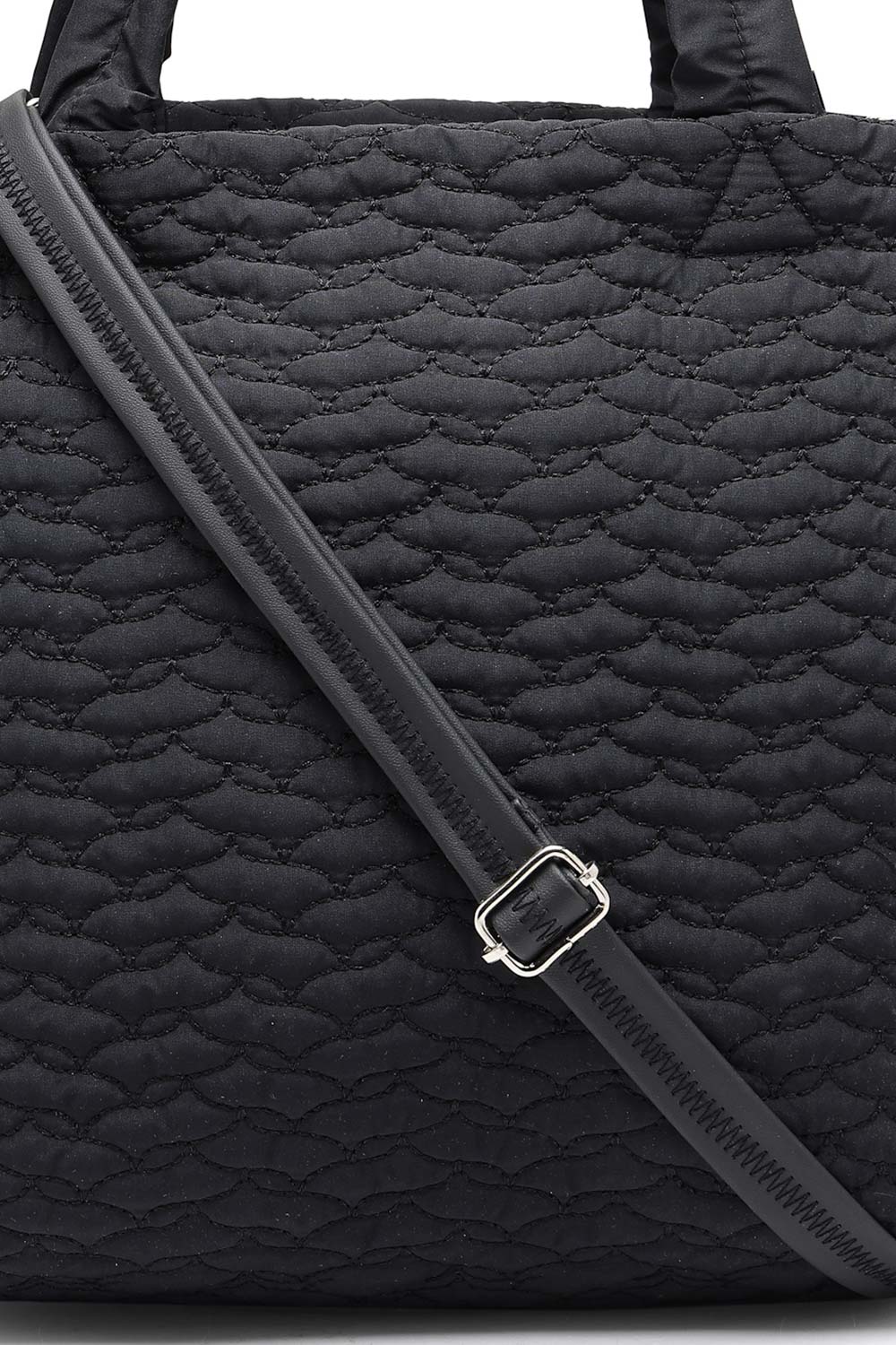 The Black Quilted Polyester Sling Bag combines natural elegance with vibrant accents. Crafted from sturdy jute, it features intricate turquoise embellishments that add a touch of bohemian charm, making it both stylish and eco-friendly for everyday use.