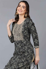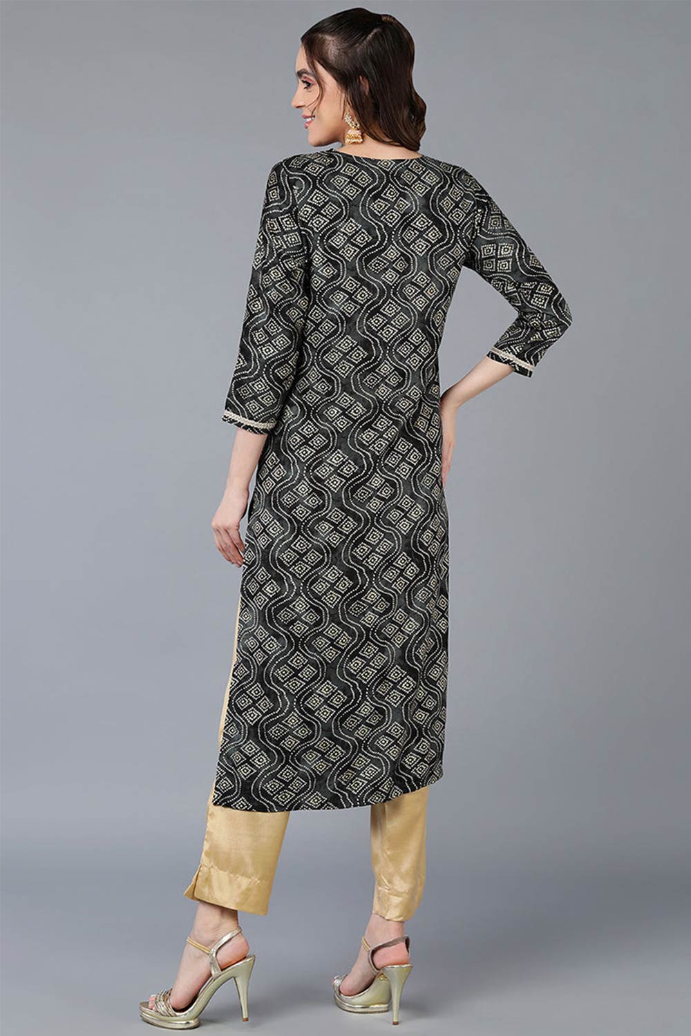 Black Rayon Bandhani Round Neck Kurti