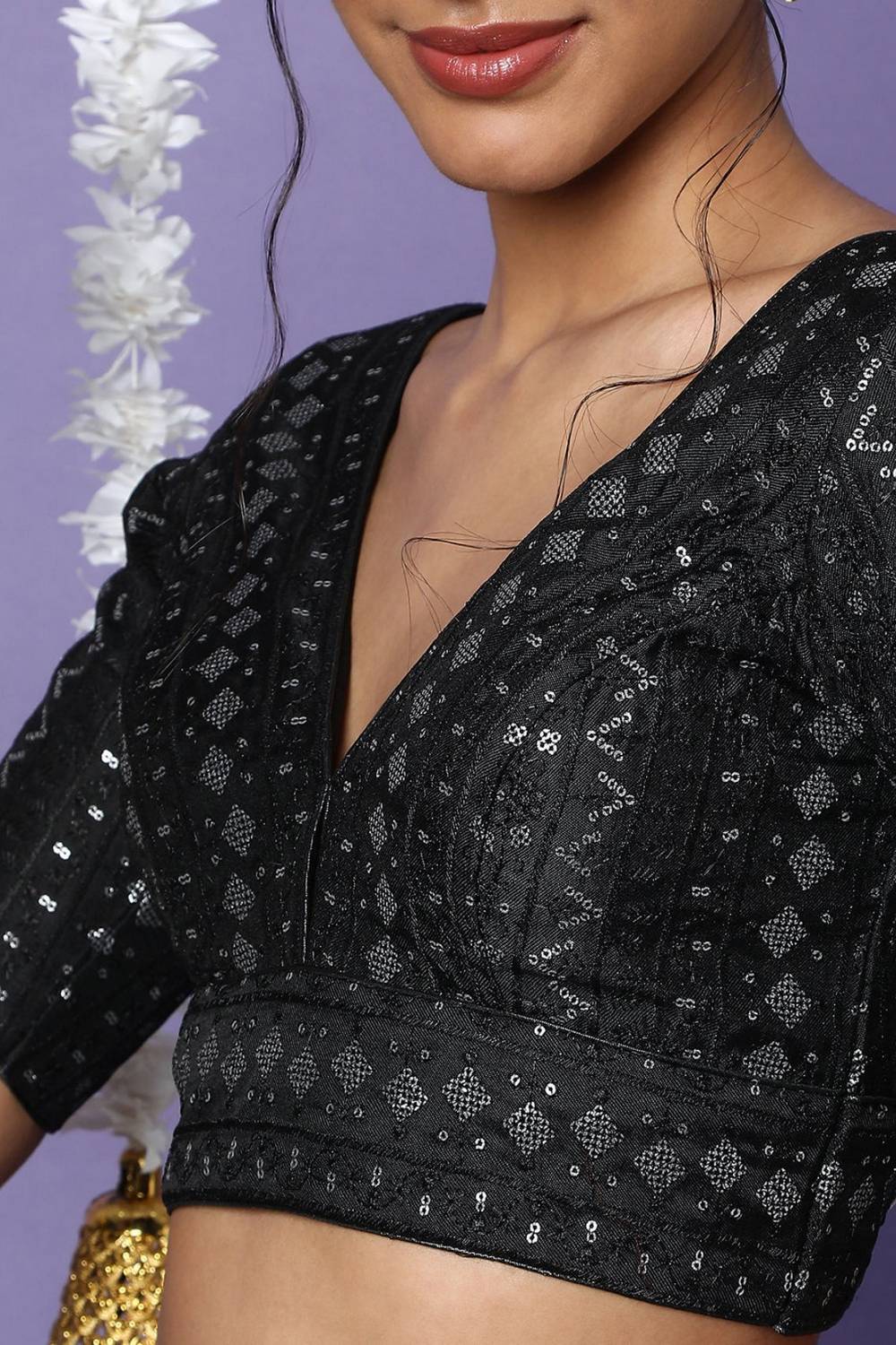 Transform your saree look with our Blouse the ultimate blend of style and comfort. Made from soft and breathable Silk it ensures a snug yet flexible fit. The intricate Sequin make this blouse a wardrobe essential. Perfect for Festive,Party it works beautifully with traditional or modern sarees alike. Team it with a silk saree, a bold necklace, and embellished sandals for a sophisticated look. Redefine your saree style with Blouse