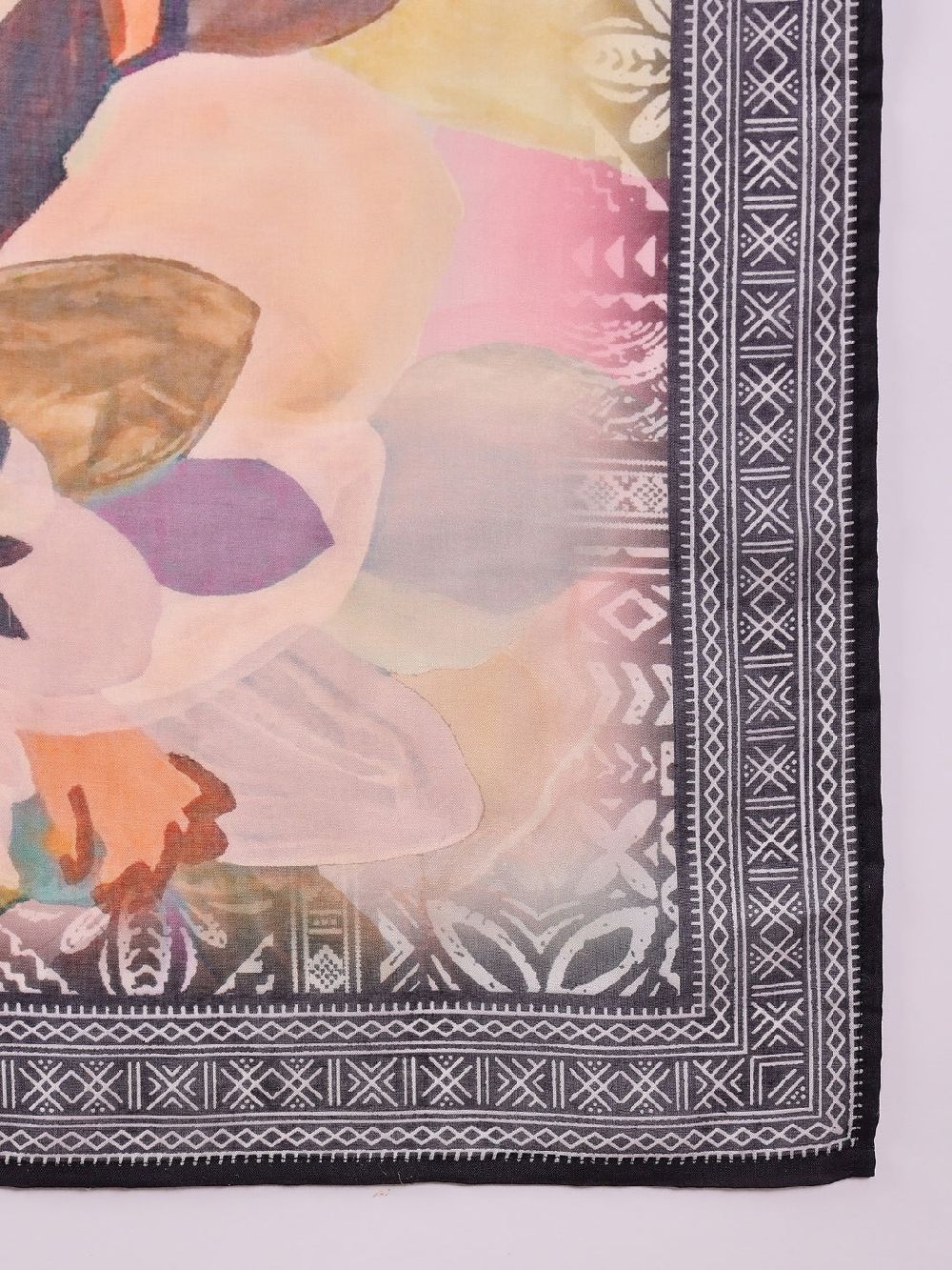 Black Silk Blend Geometric Printed Straight Kurti Pant With Dupatta
