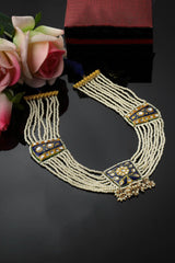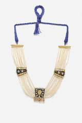 Blue And Gold Haar Necklace With Kundan And Pearls