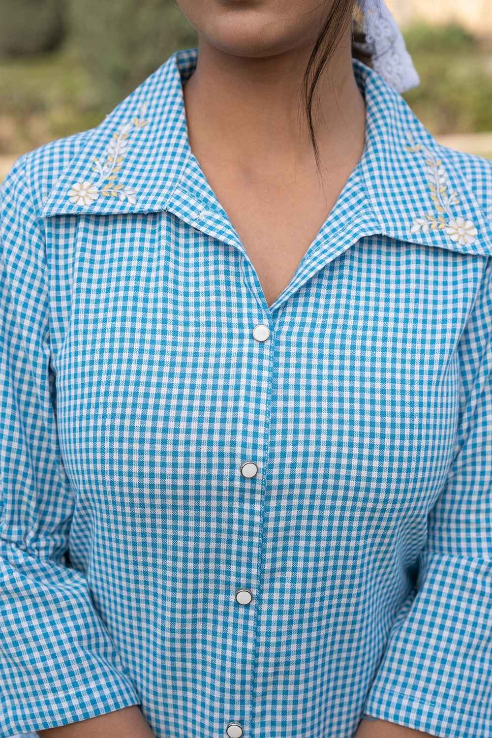 Blended Cotton Foil Print Dress In Sky Blue