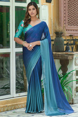 Blue Chiffon Sequins Swarovski Embroidery Work Saree