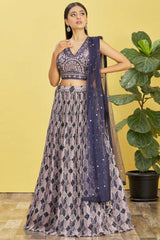 Blue Organza Thread Embroidered Lehenga Set
